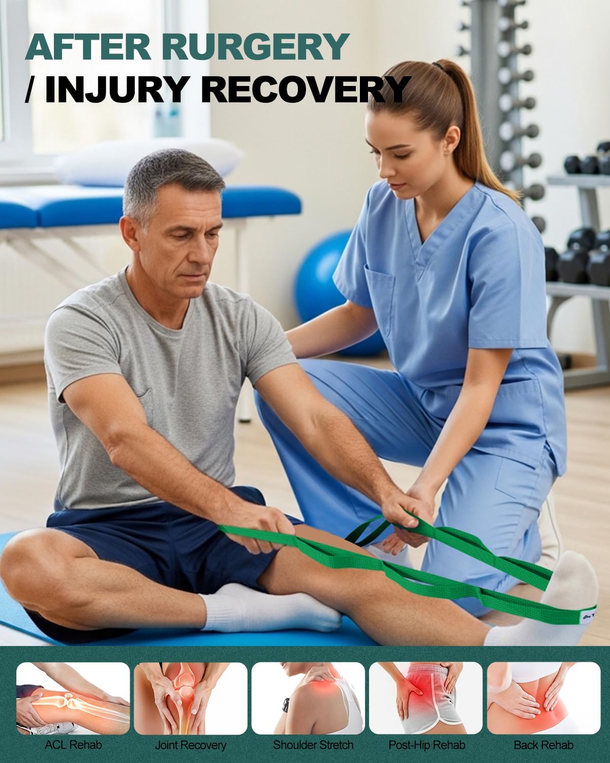 Multi-Function Stretching Strap: For PT, postop recovery, & fitness. Enhances hip, knee and ligament flexibility. Complements yoga, Pilates gear. Ideal for ballet practice, taking fitness to new heights