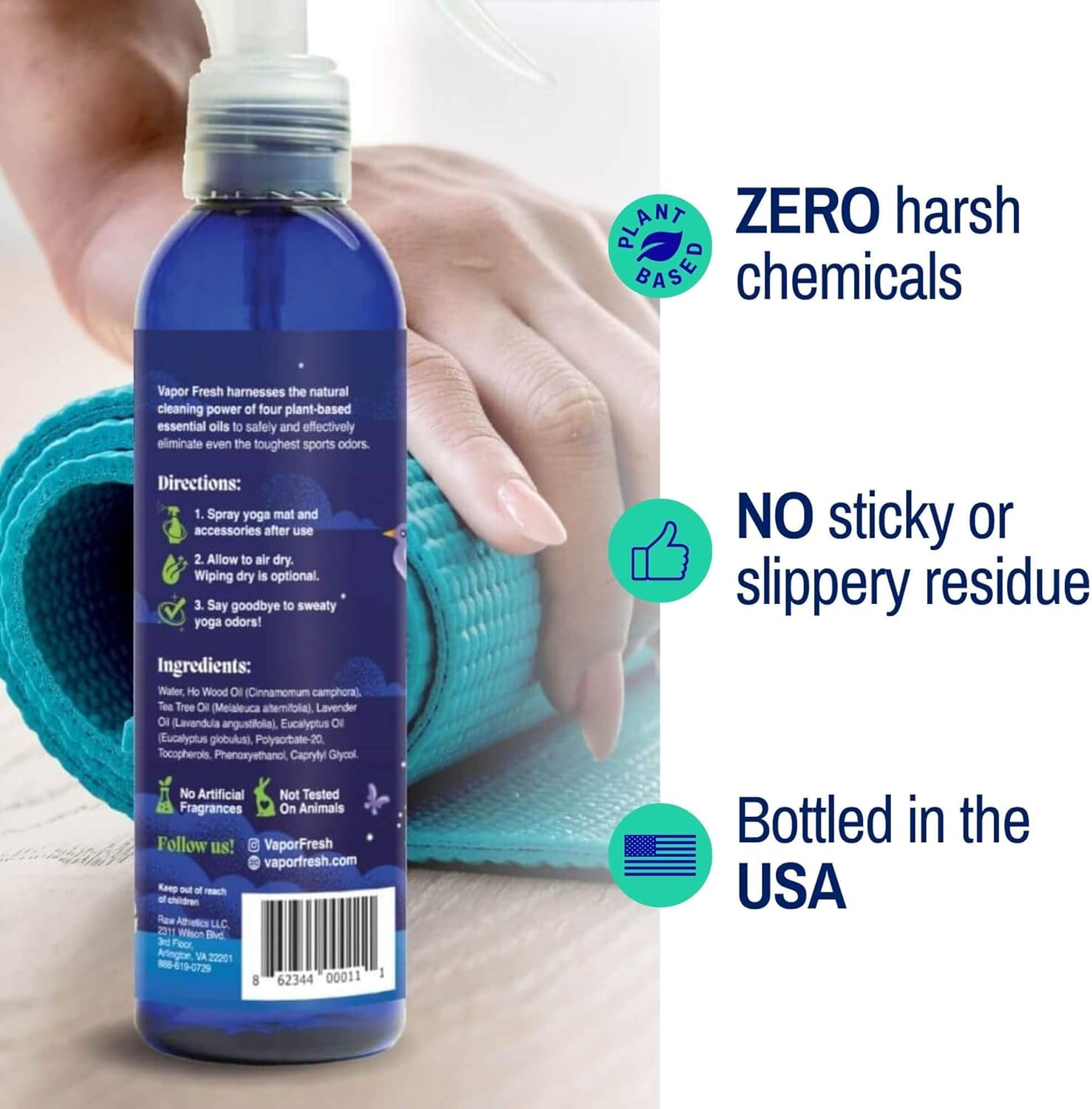Vapor Fresh Yoga Mat Cleaner Spray, 6oz (Eucalyptus Lavender) – For Yoga Blocks, Mats, Straps and More – Powered By Essential Oils (1-Pack)